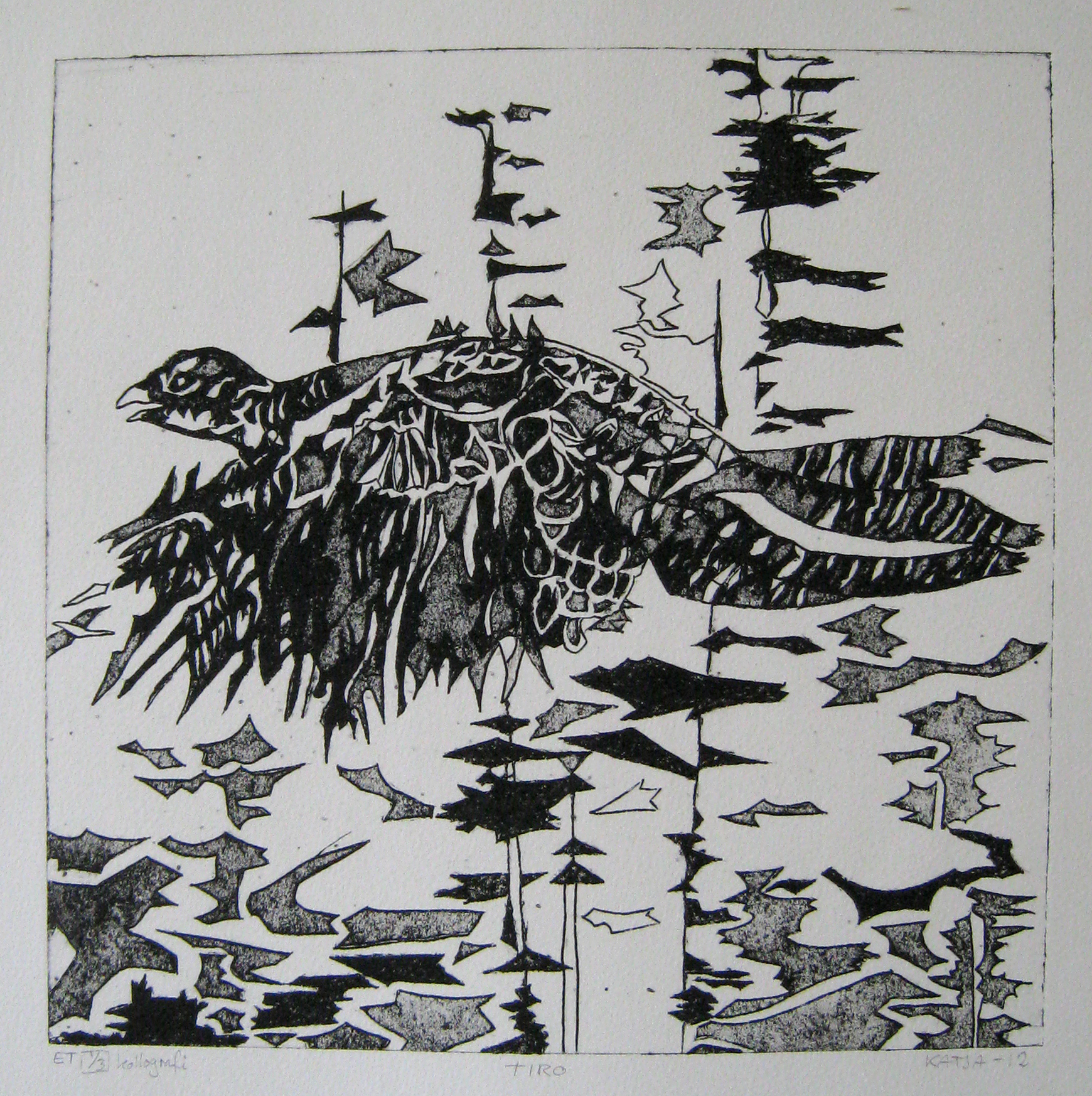 Senere på akademiet brugte jeg tre ud af fem år på den grafiske skole, hvor jeg udforskede de mange muligheder, som dette fag rummer. Jeg opdagede, hvor mange forskellige teknikker man kan arbejde med, og dengang blev kobbertryk mit foretrukne felt!De seneste år har kollografien fuldstændig taget over.Det begyndte, da jeg skulle lave nogle meget store værker til Sønderborg Slot.Så store kobberplader er næsten umulige at håndtere, og derfor gik jeg over til pap. Siden har jeg udforsket og videreudviklet dette medie, så jeg nu laver kæmpestore billeder og bittesmå billeder, runde billeder og kantede billeder, og samtlige billeder har deres udspring i mine naturoplevelser!Der forekommer som regel dyr i mine billeder - levende eller døde. Det er nogen, jeg møder ude i naturen, når jeg f.eks. går på jagt. Mange af mine billeder er lavet i et udbrud af glæde og taknemmelighed, når jeg har nedlagt et bytte. En hyldest til det dyr, der så storsindet gav sit liv for, at jeg kunne blive mæt! Andre dyr har jeg siddet i al stilhed og iagttaget. Jeg har glædet mig over synet af et travlt insekt, en arrig fugl, en drægtig rå eller en overstadig fasan. Jeg kan ikke andet end omsætte disse frydefulde oplevelser til billeder. Hvad skulle jeg dog ellers stille op med dem?Jeg arbejder altid i sort/hvid. Det virker stærkest i grafik. Får jeg lyst til at bruge farver, maler jeg i stedet for!